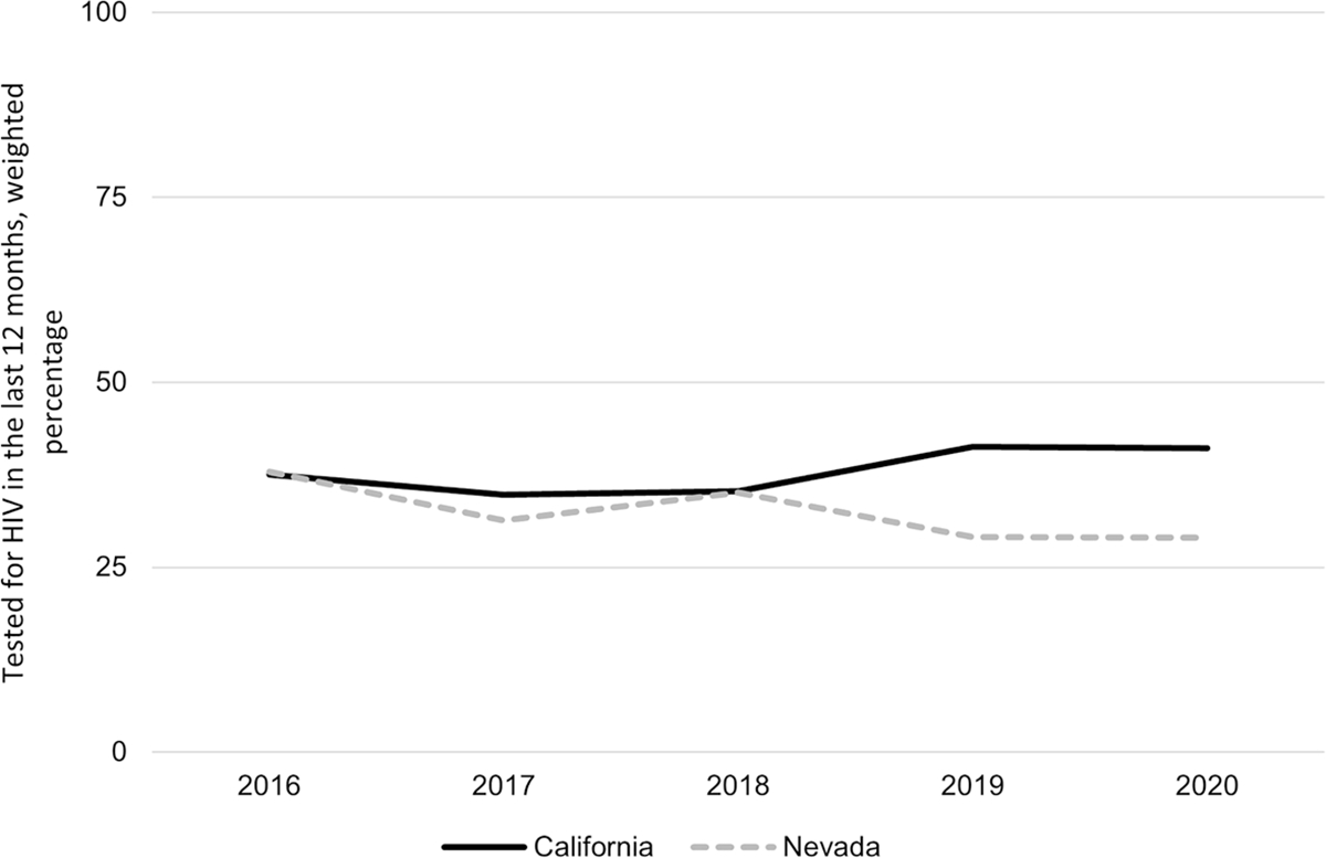 Description:HIV criminalization laws may discourage HIV testing. We tested whether California's 2018 HIV criminalization law reform increased the likelihood of past-year HIV testing compared to Nevada, which did not reform its HIV criminalization law. We fitted two difference-in-differences logistic regression models: one for all respondents reporting behaviors that increase the chances of getting or transmitting HIV, and one for male respondents reporting these behaviors. All analyses accounted for the complex survey design of BRFSS. HIV criminalization reform was significantly associated with an increased likelihood of past-year HIV testing. After reform, the predicted marginal probability of past-year HIV testing increased by six percentage points. By comparison, probabilities of a past-year HIV test decreased in Nevada. HIV criminalization law reform may increase the likelihood of getting tested by individuals who engage in behaviors that increase the chances of getting or transmitting HIV.
