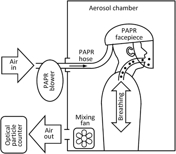 Loose-fitting powered air-purifying respirators (PAPRs) are a popular alternative to the use of filtering facepiece respirators for health care workers. Although PAPRs protect the wearer from aerosol particles, their ability to block infectious aerosol particles exhaled by the wearer from being released into the environment (called source control) is unclear.