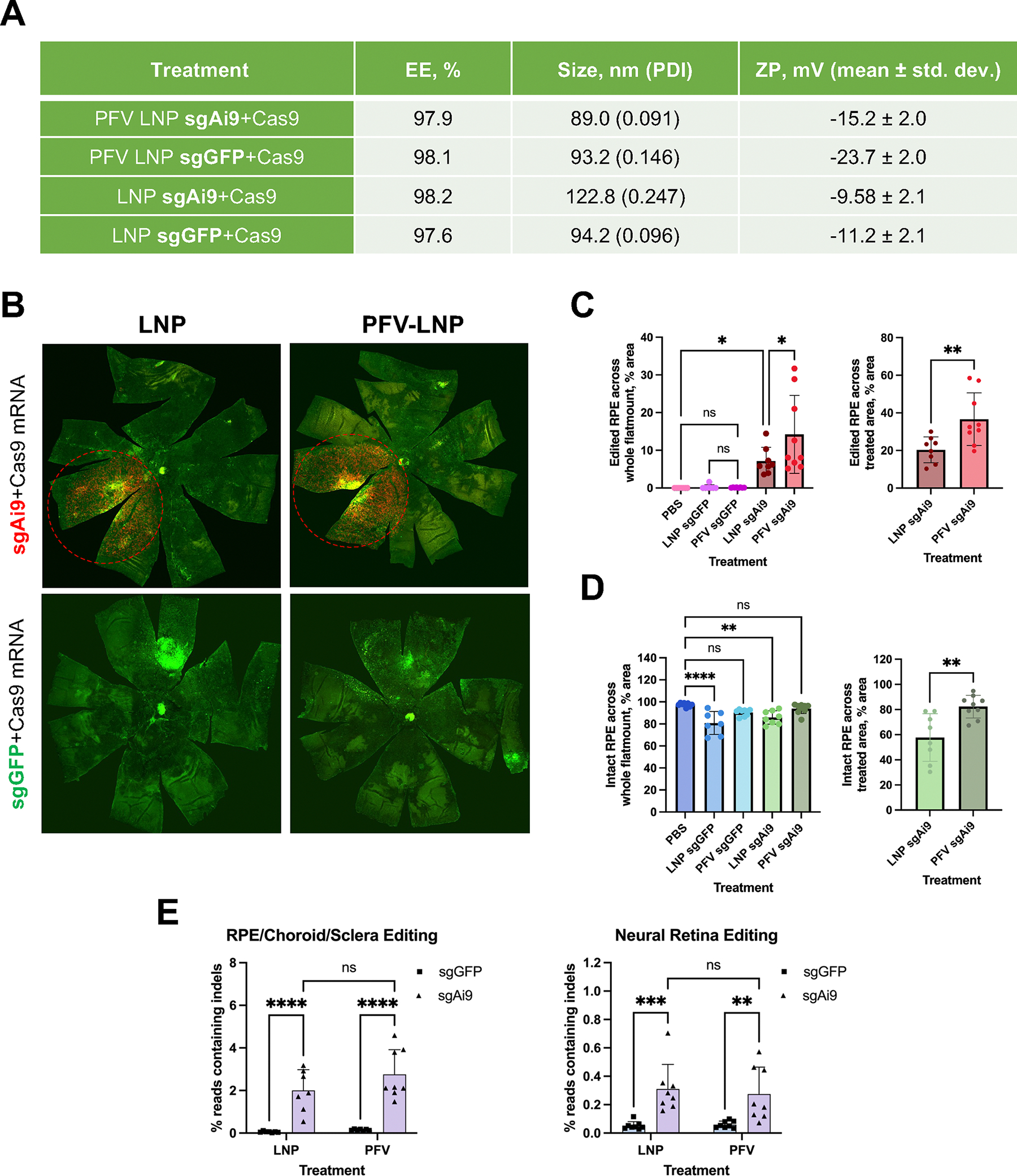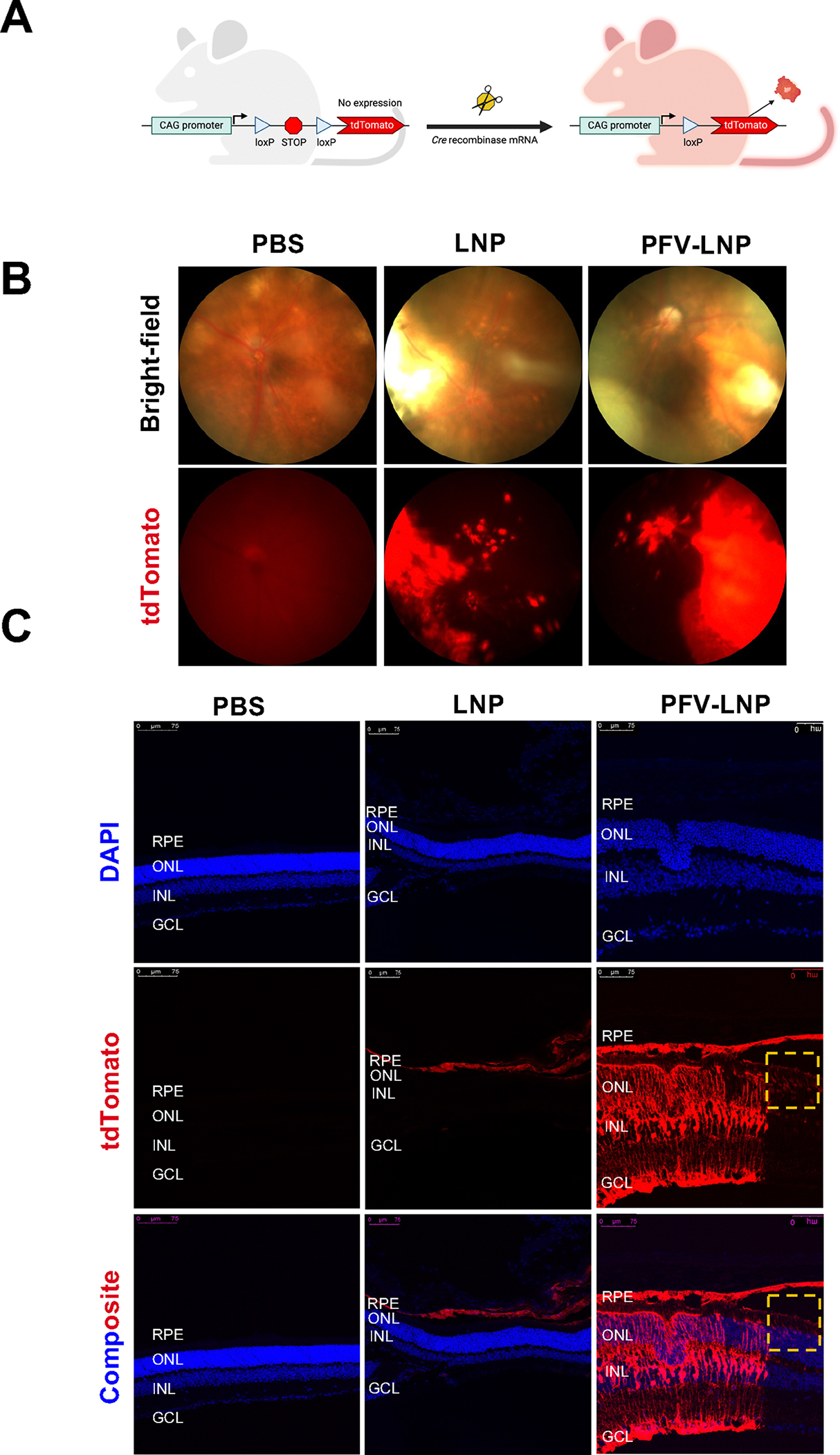 Description:Complete encapsulation of nucleic acids by lipid-based nanoparticles (LNPs) is often thought to be one of the main prerequisites for successful nucleic acid delivery, as the lipid environment protects mRNA from degradation by external nucleases and assists in initiating delivery processes. However, delivery of mRNA via a preformed vesicle approach (PFV-LNPs) defies this precondition. Unlike traditional LNPs, PFV-LNPs are formed via a solvent-free mixing process, leading to a superficial mRNA localization. While demonstrating low encapsulation efficiency in the RiboGreen assay, PFV-LNPs improved delivery of mRNA to the retina by up to 50% compared to the LNP analogs across several benchmark formulations, suggesting the utility of this approach regardless of the lipid composition. Successful mRNA and gene editors' delivery is observed in the retinal pigment epithelium and photoreceptors and validated in mice, non-human primates, and human retinal organoids. Deploying PFV-LNPs in gene editing experiments result in a similar extent of gene editing compared to analogous LNP (up to 3% on genomic level) in the Ai9 reporter mouse model; but, remarkably, retinal tolerability is significantly improved for PFV-LNP treatment. The study findings indicate that the LNP formulation process can greatly influence mRNA transfection and gene editing outcomes, improving LNP treatment safety without sacrificing efficacy.