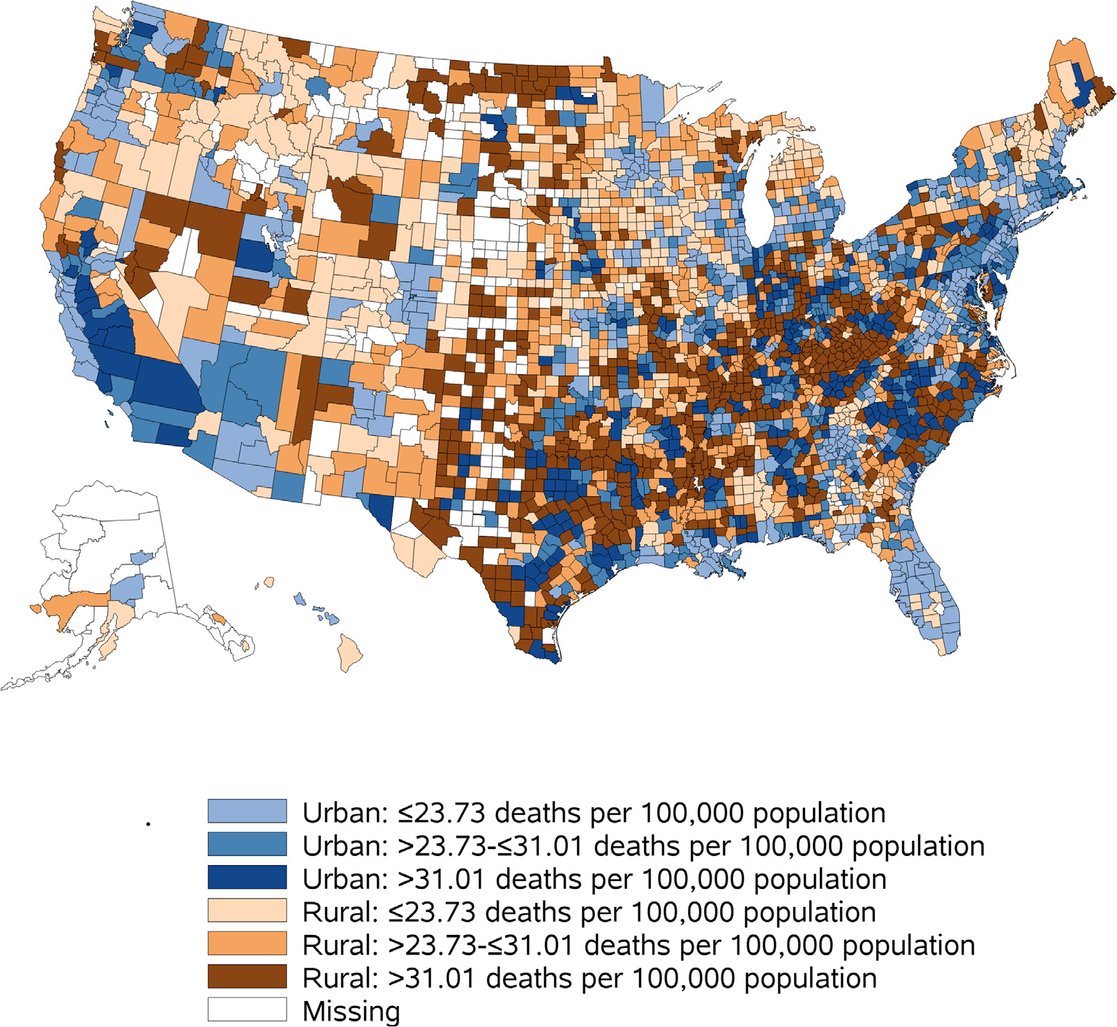 Acute kidney injury (AKI) is associated with increased mortality. AKI-related mortality trends by U.S. urban and rural counties were assessed.