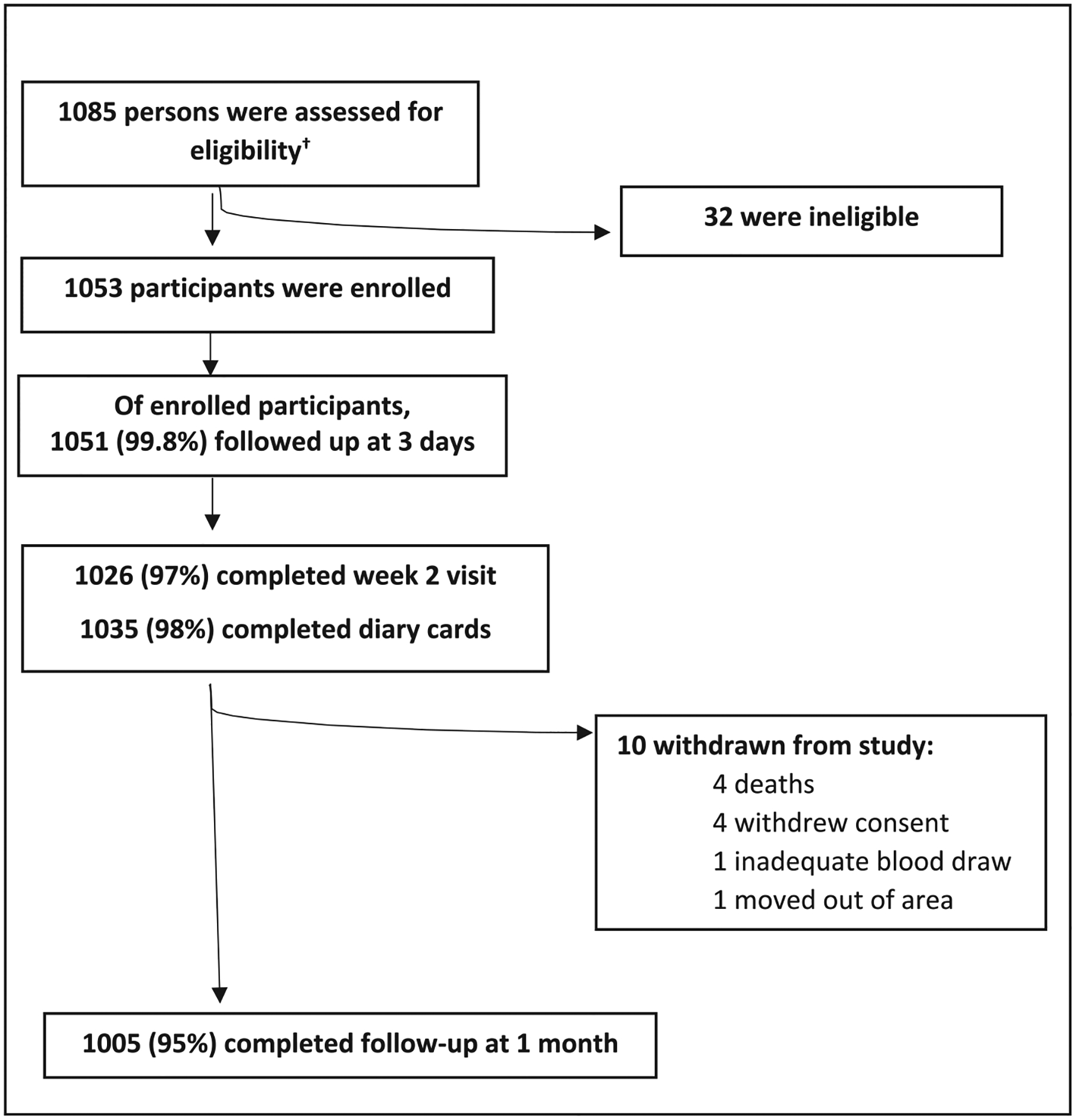 Among 1053 enrolled children, 672 (64%) were reported to have a non-serious AEFI (NSAE) and 17 (2%) were reported to have a SAE. The most common AEFI were diarrhoea, fever, and rash, each reported by 355 (34%), 338 (33%), and 188 (18%) participants, respectively. Among 17 participants with SAE, eight were reported to have had seizures and five were hospitalised for seizures or other causes (respiratory symptoms, gastrointestinal illness, malaria). Four SAEs (deaths) occurred >28 days after vaccination. There were no reported cases of pre-specified or vaccine-related SAEs. We observed no significant difference in frequency or severity of adverse events among the study groups.
