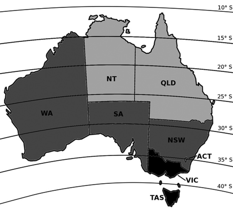 Effect of Latitude on Seasonality of Tuberculosis, Australia, 2002–2011
