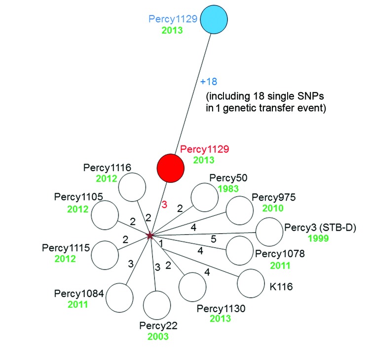 Description:"Mycobacterium canettii," an opportunistic human pathogen living in an unknown environmental reservoir, is the progenitor species from which Mycobacterium tuberculosis emerged. Since its discovery in 1969, most of the ≈70 known M. canettii strains were isolated in the Republic of Djibouti, frequently from expatriate children and adults. We show here, by whole-genome sequencing, that most strains collected from February 2010 through March 2013, and associated with 2 outbreaks of lymph node tuberculosis in children, belong to a unique epidemic clone within M. canettii. Evolution of this clone, which has been recovered regularly since 1983, may mimic the birth of M. tuberculosis. Thus, recognizing this organism and identifying its reservoir are clinically important.