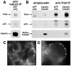 Description:Membrane protein sorting is mediated by interactions between proteins and lipids. One mechanism that contributes to sorting involves patches of lipids, termed lipid rafts, which are different from their surroundings in lipid and protein composition. Although the nerve growth factor (NGF) receptors, TrkA and p75(NTR) collaborate with each other at the plasma membrane to bind NGF, these two receptors are endocytosed separately and activate different cellular responses. We hypothesized that receptor localization in membrane rafts may play a role in endocytic sorting. TrkA and p75(NTR) both reside in detergent-resistant membranes (DRMs), yet they responded differently to a variety of conditions. The ganglioside, GM1, caused increased association of NGF, TrkA, and microtubules with DRMs, but a decrease in p75(NTR). When microtubules were induced to polymerize and attach to DRMs by in vitro reactions, TrkA, but not p75(NTR), was bound to microtubules in DRMs and in a detergent-resistant endosomal fraction. NGF enhanced the interaction between TrkA and microtubules in DRMs, yet tyrosine phosphorylated TrkA was entirely absent in DRMs under conditions where activated TrkA was detected in detergent-sensitive membranes and endosomes. These data indicate that TrkA and p75(NTR) partition into membrane rafts by different mechanisms, and that the fraction of TrkA that associates with DRMs is internalized but does not directly form signaling endosomes. Rather, by attracting microtubules to lipid rafts, TrkA may mediate other processes such as axon guidance.