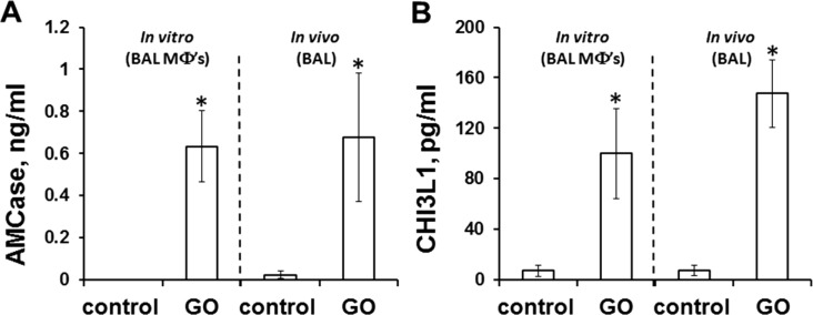 Description:Several lines of evidence indicate that exposure to nanoparticles (NPs) is able to modify airway immune responses, thus facilitating the development of respiratory diseases. Graphene oxide (GO) is a promising carbonaceous nanomaterial with unique physicochemical properties, envisioned for a multitude of medical and industrial applications. In this paper, we determined how exposure to GO modulates the allergic pulmonary response. Using a murine model of ovalbumin (OVA)-induced asthma, we revealed that GO, given at the sensitization stage, augmented airway hyperresponsiveness and airway remodeling in the form of goblet cell hyperplasia and smooth muscle hypertrophy. At the same time, the levels of the cytokines IL-4, IL-5, and IL-13 were reduced in broncho-alveolar lavage (BAL) fluid in GO-exposed mice. Exposure to GO during sensitization with OVA decreased eosinophil accumulation and increased recruitment of macrophages in BAL fluid. In line with the cytokine profiles, sensitization with OVA in the presence of GO stimulated the production of OVA-specific IgG2a and down-regulated the levels of IgE and IgG1. Moreover, exposure to GO increased the macrophage production of the mammalian chitinases, CHI3L1 and AMCase, whose expression is associated with asthma. Finally, molecular modeling has suggested that GO may directly interact with chitinase, affecting AMCase activity, which has been directly proven in our studies. Thus, these data show that GO exposure attenuates Th2 immune response in a model of OVA-induced asthma, but leads to potentiation of airway remodeling and hyperresponsiveness, with the induction of mammalian chitinases.