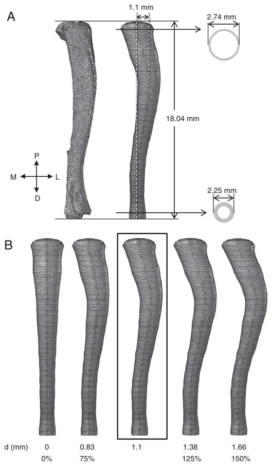 Description:Mechanical loads play a pivotal role in the growth and maintenance of bone and joints. Although loading can activate anabolic genes and induce bone remodeling, damping is essential for preventing traumatic bone injury and fracture. In this study we investigated the damping capacity of bone, joint tissue, muscle, and skin using a mouse hindlimb model of enhanced loading in conjunction with finite element modeling to model bone curvature. Our hypothesis was that loads were primarily absorbed by the joints and muscle tissue, but that bone also contributed to damping through its compression and natural bending. To test this hypothesis, fresh mouse distal lower limb segments were cyclically loaded in axial compression in sequential bouts, with each subsequent bout having less surrounding tissue. A finite element model was generated to model effects of bone curvature in silico. Two damping-related parameters (phase shift angle and energy loss) were determined from the output of the loading experiments. Interestingly, the experimental results revealed that the knee joint contributed to the largest portion of the damping capacity of the limb, and bone itself accounted for approximately 38% of the total phase shift angle. Computational results showed that normal bone curvature enhanced the damping capacity of the bone by approximately 40%, and the damping effect grew at an accelerated pace as curvature was increased. Although structural curvature reduces critical loads for buckling in beam theory, evolution apparently favors maintaining curvature in the tibia. Histomorphometric analysis of the tibia revealed that in response to axial loading, bone formation was significantly enhanced in the regions that were predicted to receive a curvature-induced bending moment. These results suggest that in addition to bone's compressive damping capacity, surrounding tissues, as well as naturally-occurring bone curvature, also contribute to mechanical damping, which may ultimately affect bone remodeling and bone quality.