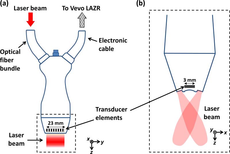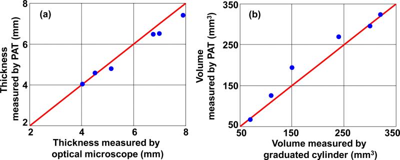 Description:We applied a linear-array-based photoacoustic probe to detect melanin-containing melanoma tumor depth and volume in nude mice in vivo. This system can image melanomas at five frames per second (fps), which is much faster than our previous handheld single transducer system (0.1 fps). We first theoretically show that, in addition to the higher frame rate, almost the entire boundary of the melanoma can be detected by the linear-array-based probe, while only the horizontal boundary could be detected by the previous system. Then we demonstrate the ability of this linear-array-based system in measuring both the depth and volume of melanoma through phantom, ex vivo, and in vivo experiments. The volume detection ability also enables us to accurately calculate the rate of growth of the tumor, which is an important parameter in quantifying the tumor activity. Our results show that this system can be used for clinical melanoma diagnosis and treatment in humans at the bedside. Linear-array-based PA images of melanoma acquired in vivo on day 3 (a) and day 6 (b).