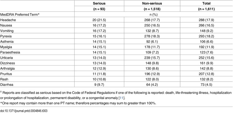 VAERS received 1,611 reports after HDCV; 93 (5.8%) were serious. Among all reports, the three most common AEs included pyrexia (18.2%), headache (17.9%), and nausea (16.5%). Among serious reports, four deaths appeared to be unrelated to vaccination.