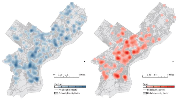 Population-based case-control study from January 2010 to December 2012 of all 13- to 20-year-olds who were homicide victims in Philadelphia during the study period matched to randomly selected 13- to 20-year-old controls from the general population.