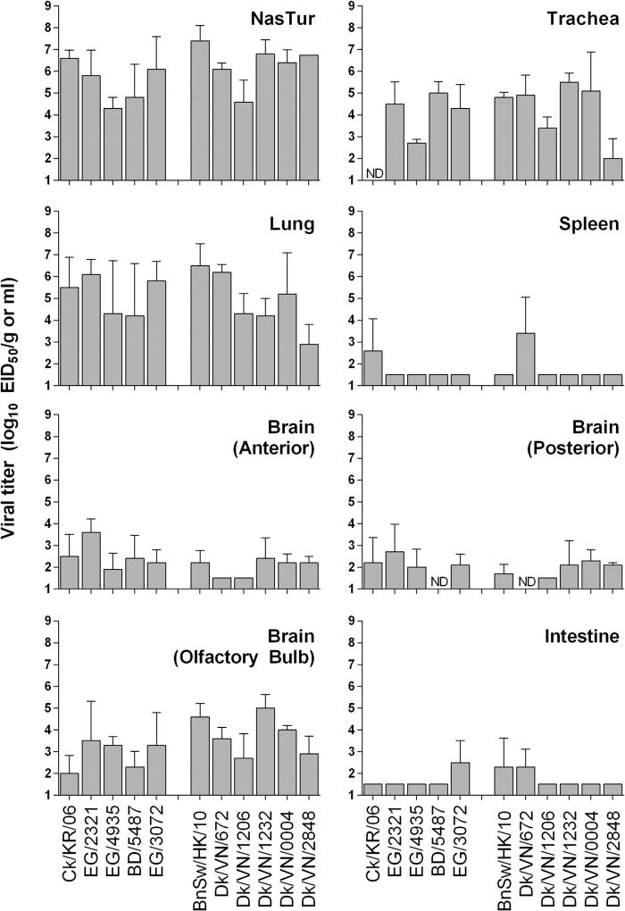 Description:Sporadic avian to human transmission of highly pathogenic avian influenza (HPAI) A(H5N1) viruses necessitates the analysis of currently circulating and evolving clades to assess their potential risk. Following the spread and sustained circulation of clade 2 viruses across multiple continents, numerous subclades and genotypes have been described. To better understand the pathogenesis associated with the continued diversification of clade 2A(H5N1) influenza viruses, we investigated the relative virulence of eleven human and poultry isolates collected from 2006 to 2013 by determining their ability to cause disease in the ferret model. Numerous clade 2 viruses, including a clade 2.2 avian isolate, a 2.2.2.1 human isolate, and two 2.2.1 human isolates, were found to be of low virulence in the ferret model, though lethality was detected following infection with one 2.2.1 human isolate. In contrast, three of six clade 2.3.2.1 avian isolates tested led to severe disease and death among infected ferrets. Clade 2.3.2.1b and 2.3.2.1c isolates, but not 2.3.2.1a isolates, were associated with ferret lethality. All A(H5N1) viruses replicated efficiently in the respiratory tract of ferrets regardless of their virulence and lethality. However, lethal isolates were characterized by systemic viral dissemination, including detection in the brain and enhanced histopathology in lung tissues. The finding of disparate virulence phenotypes between clade 2A(H5N1) viruses, notably differences between subclades of 2.3.2.1 viruses, suggests there are distinct molecular determinants present within the established subclades, the identification of which will assist in molecular-based surveillance and public health efforts against A(H5N1) viruses.