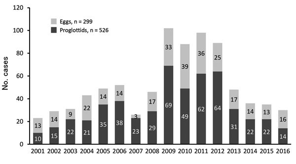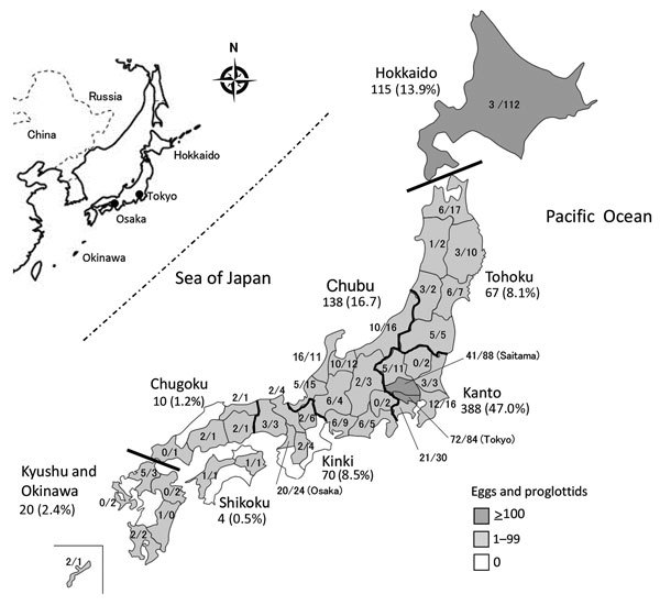 Epidemiology of Diphyllobothrium nihonkaiense Diphyllobothriasis, Japan, 2001–2016