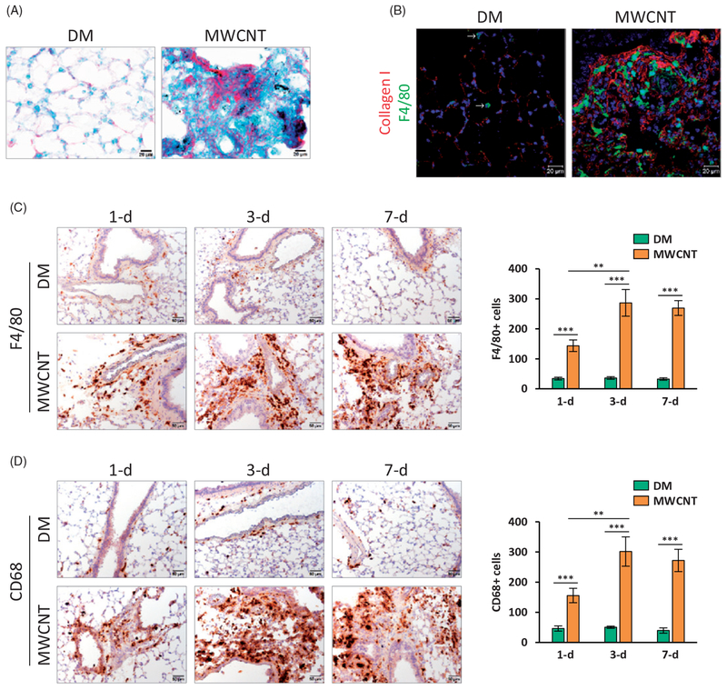 Macrophage polarization and activation at the interface of multi-walled carbon nanotube-induced pulmonary inflammation and fibrosis