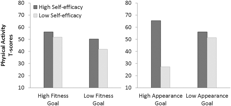 Trials of physical activity interventions based on social-cognitive theory should consider that the influence of changing goals on physical activity may differ according to whether students maintain high efficacy beliefs about overcoming barriers to physical activity coincident with perceptions of their physical activity environment.