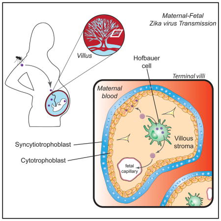 Description:The recent Zika virus (ZIKV) outbreak in Brazil has been directly linked to increased cases of microcephaly in newborns. Current evidence indicates that ZIKV is transmitted vertically from mother to fetus. However, the mechanism of intrauterine transmission and the cell types involved remain unknown. We demonstrate that the contemporary ZIKV strain PRVABC59 (PR 2015) infects and replicates in primary human placental macrophages, called Hofbauer cells, and to a lesser extent in cytotrophoblasts, isolated from villous tissue of full-term placentae. Viral replication coincides with induction of type I interferon (IFN), pro-inflammatory cytokines, and antiviral gene expression, but with minimal cell death. Our results suggest a mechanism for intrauterine transmission in which ZIKV gains access to the fetal compartment by directly infecting placental cells and disrupting the placental barrier.