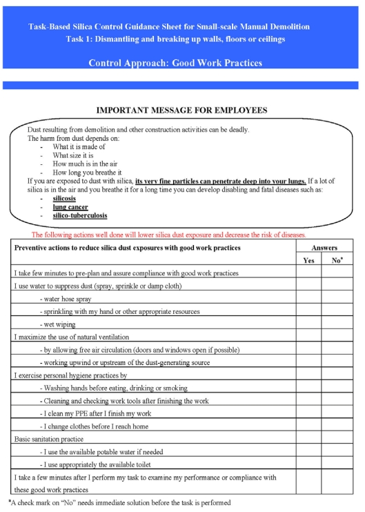 Checklist Model to Improve Work Practices in Small-Scale Demolition Operations with Silica Dust Exposures