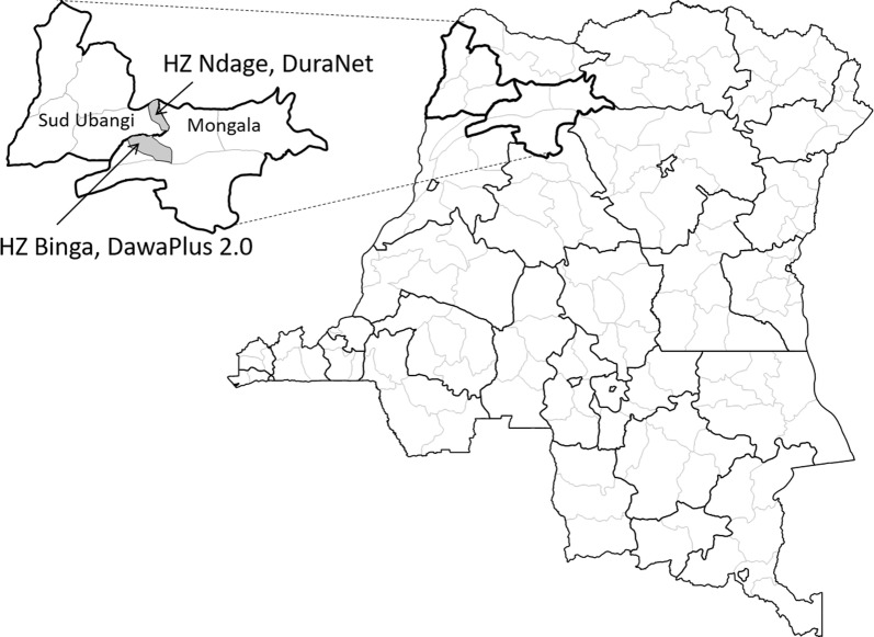 Anecdotal reports from DRC suggest that long-lasting insecticidal nets (LLIN) distributed through mass campaigns in DRC may not last the expected average three years. To provide the National Malaria Control Programme with evidence on physical and insecticidal durability of nets distributed during the 2016 mass campaign, two brands of LLIN, DawaPlus® 2.0 and DuraNet©, were monitored in neighbouring and similar health zones in Sud Ubangi and Mongala Provinces.