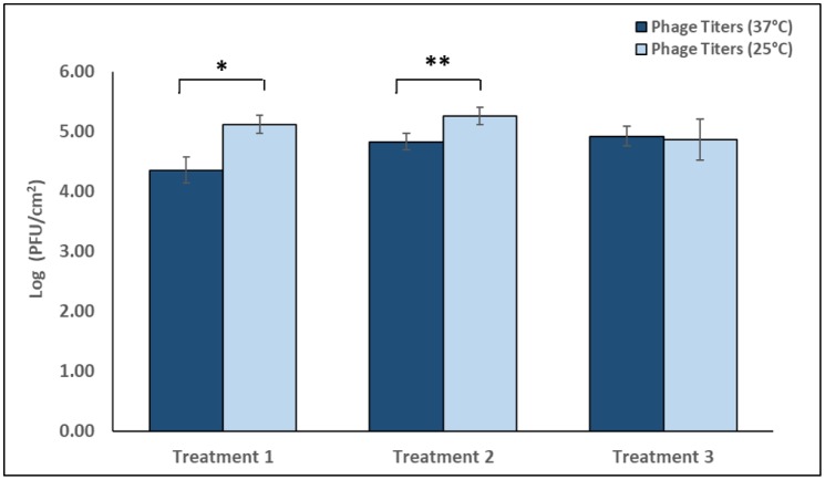 Description:The p-traps of hospital handwashing sinks represent a potential reservoir for antimicrobial-resistant organisms of major public health concern, such as carbapenemase-producing KPC+ | (CPKP). Bacteriophages have reemerged as potential biocontrol agents, particularly against biofilm-associated, drug-resistant microorganisms. The primary objective of our study was to formulate a phage cocktail capable of targeting a CPKP strain (CAV1016) at different stages of colonization within polymicrobial drinking water biofilms using a CDC biofilm reactor (CBR) p-trap model. A cocktail of four CAV1016 phages, all exhibiting depolymerase activity, were isolated from untreated wastewater using standard methods. Biofilms containing |, |, |, |, |, and | were established in the CBR p-trap model for a period of 28 d. Subsequently, CAV1016 was inoculated into the p-trap model and monitored over a period of 21 d. Biofilms were treated for 2 h at either 25 °C or 37 °C with the phage cocktail (10| PFU/ml) at 7, 14, and 21 d post-inoculation. The effect of phage treatment on the viability of biofilm-associated CAV1016 was determined by plate count on m-Endo LES agar. Biofilm heterotrophic plate counts (HPC) were determined using R2A agar. Phage titers were determined by plaque assay. Phage treatment reduced biofilm-associated CAV1016 viability by 1 log| CFU/cm| (p < 0.05) at 7 and 14 d (37 °C) and 1.4 log| and 1.6 log| CFU/cm| (p < 0.05) at 7 and 14 d, respectively (25 °C). No significant reduction was observed at 21 d post-inoculation. Phage treatment had no significant effect on the biofilm HPCs (p > 0.05) at any time point or temperature. Supplementation with a non-ionic surfactant appears to enhance phage association within biofilms. The results of this study suggest the potential of phages to control CPKP and other carbapenemase-producing organisms associated with microbial biofilms in the healthcare environment.