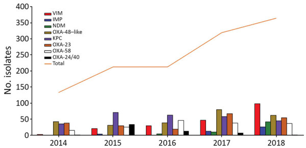 Carbapenemase-Producing Gram-Negative Bacteria in Andalusia, Spain, 2014–2018
