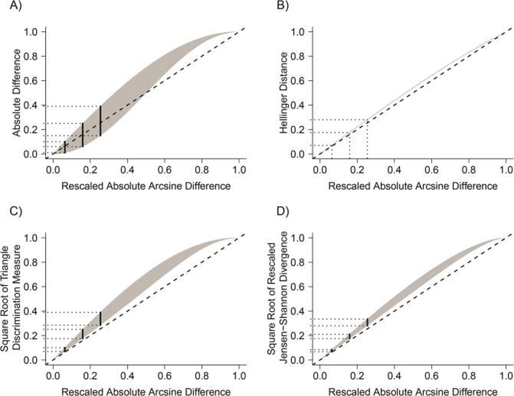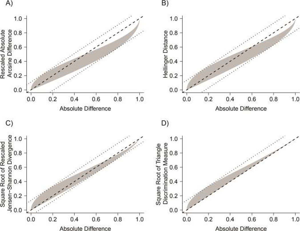 Description:In this paper, we evaluate 11 measures of inequality, d(p1, p2), between 2 proportions p1 and p2, some of which are new to the health disparities literature. These measures are selected because they are continuous, nonnegative, equal to 0 if and only if |p1 - p2| = 0, and maximal when |p1 - p2| = 1. They are also symmetrical [d(p1, p2) = d(p2, p1)] and complement-invariant [d(p1, p2) = d(1 - p2, 1 - p1)]. To study intermeasure agreement, 5 of the 11 measures, including the absolute difference, are retained, because they remain finite and are maximal if and only if |p1 - p2| = 1. Even when the 2 proportions are assumed to be drawn at random from a shared distribution-interpreted as the absence of an avoidable difference-the expected value of d(p1, p2) depends on the shape of the distribution (and the choice of d) and can be quite large. To allow for direct comparisons among measures, we propose a standard measurement unit akin to a z score. For skewed underlying beta distributions, 4 of the 5 retained measures, once standardized, offer more conservative assessments of the magnitude of inequality than the absolute difference. We conclude that, even for measures that share the highlighted mathematical properties, magnitude comparisons are most usefully assessed relative to an elicited or estimated underlying distribution for the 2 proportions.
