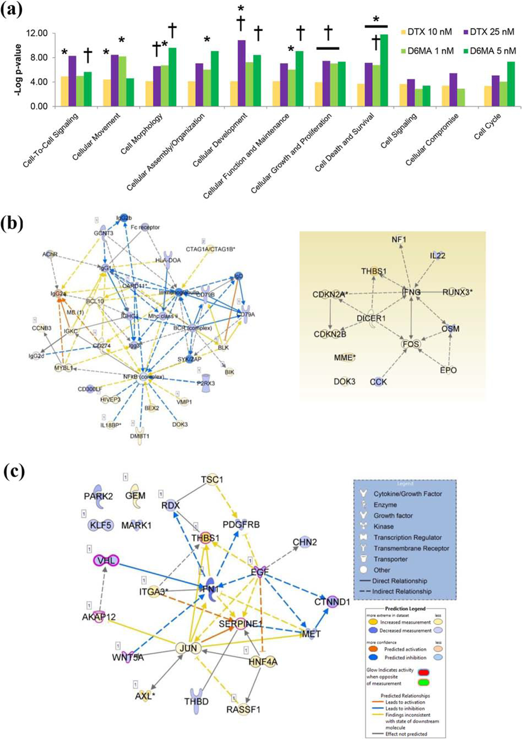 Digitoxin and D6MA induced a decrease in matrix metalloproteinases expression via altered focal adhesion signaling and a suppression of the phosphoinositide 3-kinases / protein kinase B pathway which lead to enhanced adhesion, altered elasticity, and reduced motility of NSCLCs. Global gene expression analysis identified dose-dependent changes to nuclear factor kappa-light-chain-enhancer, epithelial tumor, and microtubule dynamics signaling.