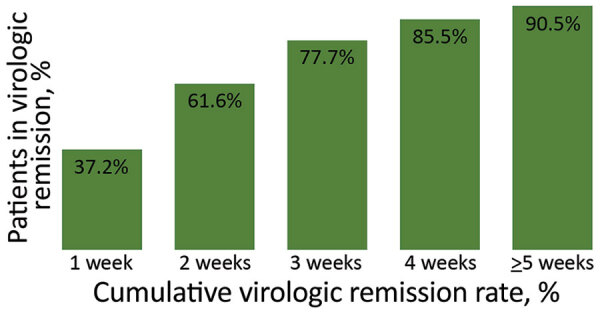 Description:We evaluated the clinical course of asymptomatic and mildly symptomatic patients with laboratory-confirmed coronavirus disease (COVID-19) admitted to community treatment centers (CTCs) for isolation in South Korea. Of 632 patients, 75 (11.9%) had symptoms at admission, 186 (29.4%) were asymptomatic at admission but developed symptoms during their stay, and 371 (58.7%) remained asymptomatic during their entire clinical course. Nineteen (3.0%) patients were transferred to hospitals, but 94.3% (573/613) of the remaining patients were discharged from CTCs upon virologic remission. The mean virologic remission period was 20.1 days (SD + 7.7 days). Nearly 20% of patients remained in the CTCs for 4 weeks after diagnosis. The virologic remission period was longer in symptomatic patients than in asymptomatic patients. In mildly symptomatic patients, the mean duration from symptom onset to virologic remission was 11.7 days (SD + 8.2 days). These data could help in planning for isolation centers and formulating self-isolation guidelines.